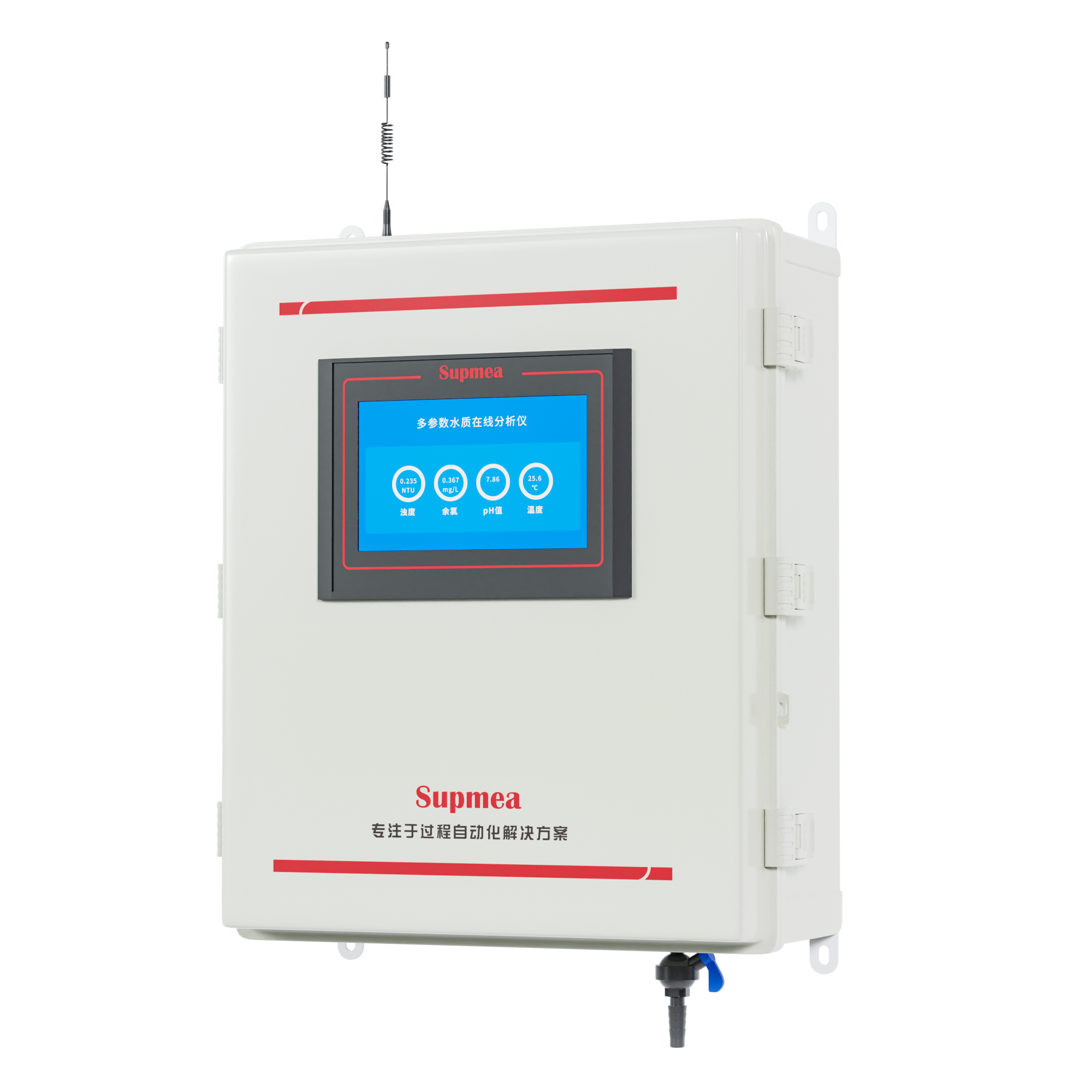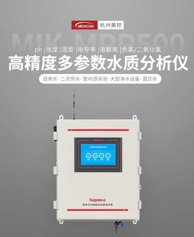 本款多参数水质在线分析仪是本公司自主研发制造的新一代饮用水水质监测设备,该设备可广泛用于城市或村镇自来水厂、自来水输水管网、自来水二次供水、用户末梢、室内游泳池、大型净水设备和直饮水等水质在线监测,是水厂生产过程控制、水利水务管理、卫生监督等领域必不可少的在线分析设备。
