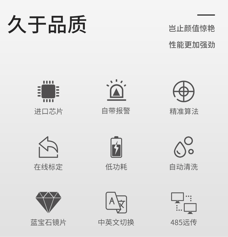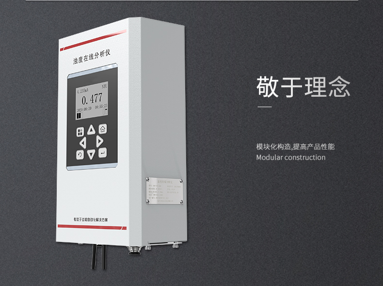 浊度在线分析仪是针对饮用水水质在线监测,量身研发的具有自主 知识产权的专利产品,具有超低浊度检出限、高精度测量、设备长时间 免维护、省水工作和数字化输出的特点,支持云平台和手机移动端数据 远程监控,以及 RS485-modbus 通讯,可广泛应用于自来水出厂水、二次 供水、管网末梢水、直饮水、膜过滤水、游泳池、地表水等浊度在线监测。