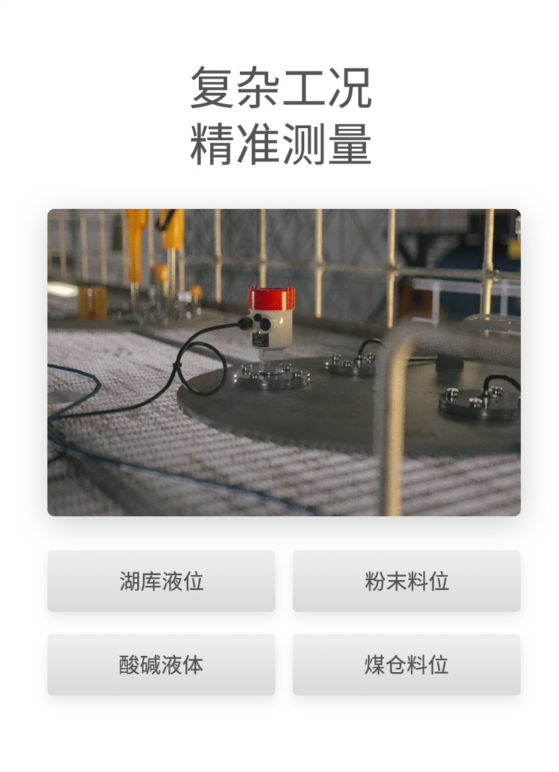 本产品波束能量低,对人体及环境均无伤害,还具有不受介质比重的影响、不受介电常数变化的影响、不需要现场校调等优点,广泛应用江河、水库、湖泊、灌渠、河道等自然水域水文监测场合。